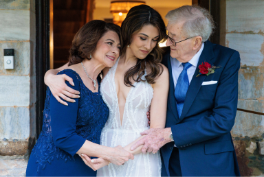Tory helps her new sister-in-law put on socks and her wedding sneakers